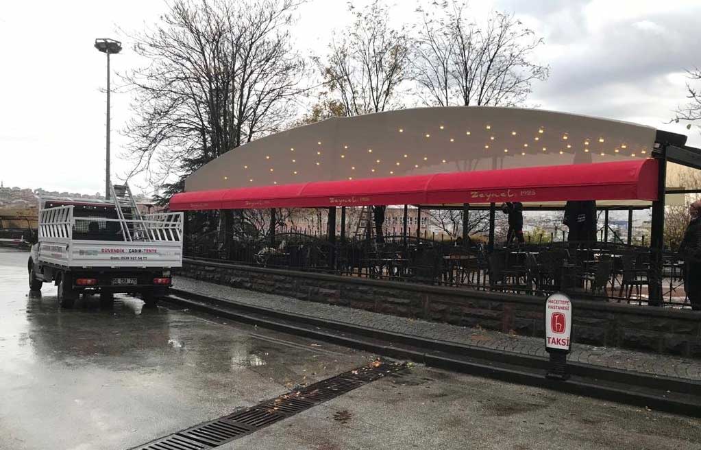 Otel, kafe, restoran ve benzeri mekanlarda güneşi ve yağmuru kontrol altında tutmak için kullanılan bir tente sistemidir. Tentenin gölge verdiği yada yağmur koruması sağladığı noktaları arzuya göre ayarlanabilmektedir.